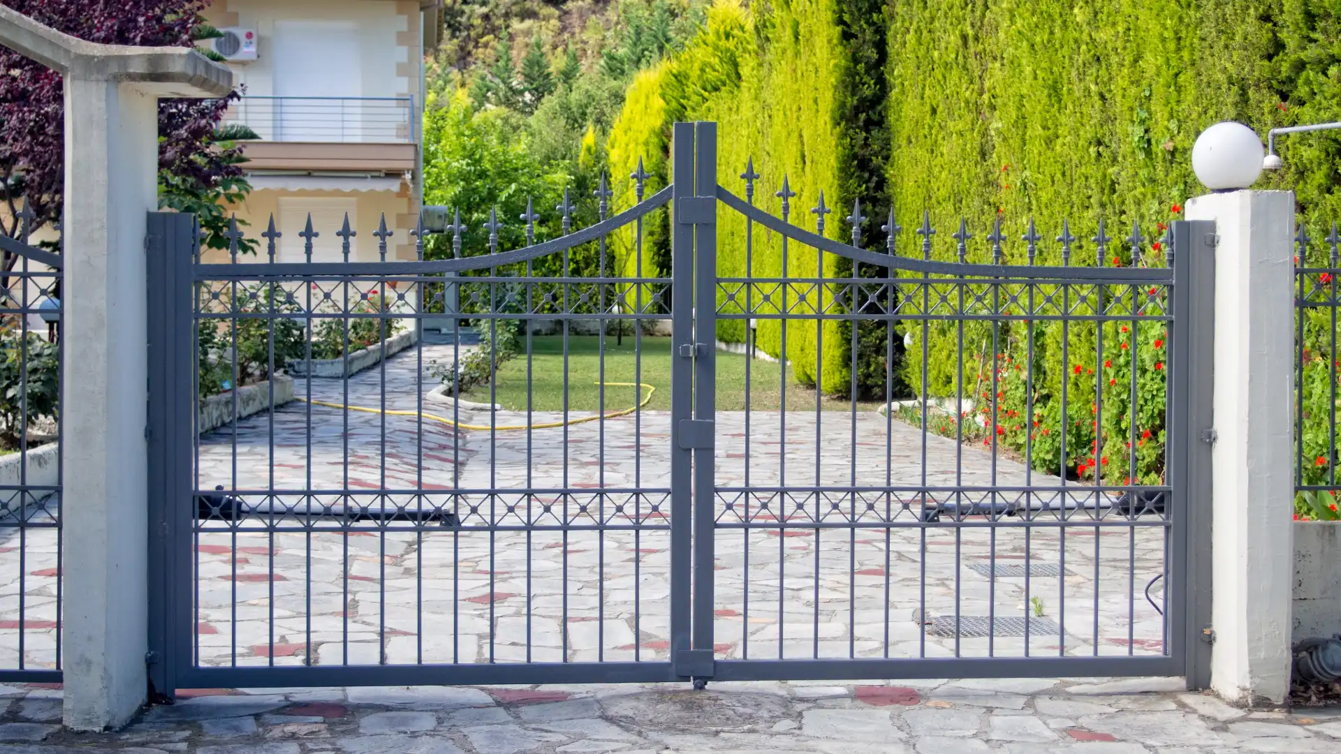 These gates help manage pedestrian flow, create separation, and increase the visual appeal of your landscape. Decorative hardware, curved tops, or matching panels are available, and many of our clients now pair walkway entry gates driveway layouts with keypads or app-controlled locks for convenience.